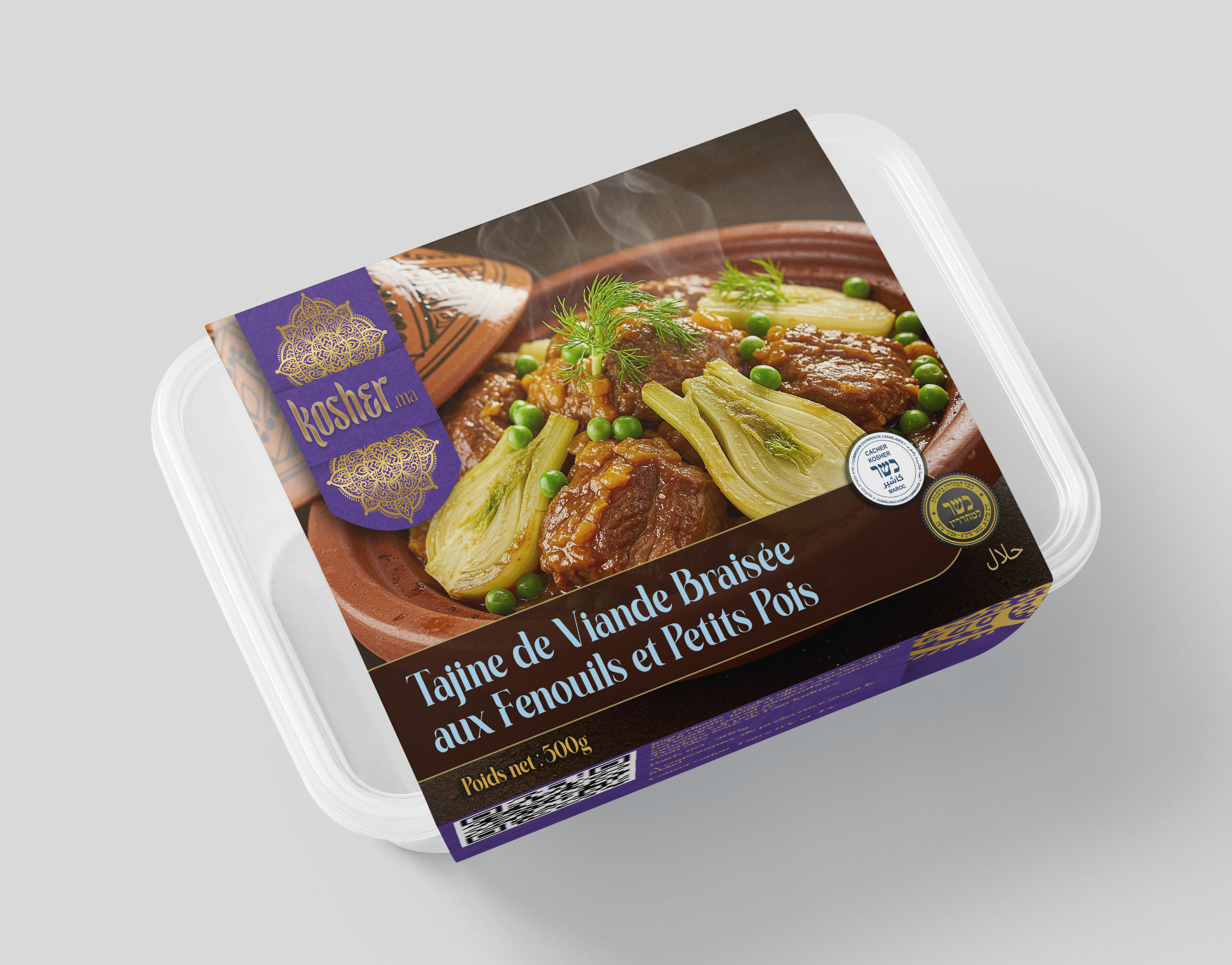 Ce tajine est préparé selon la méthode traditionnelle marocaine. La viande est d'abord dorée pour développer ses arômes, puis mijotée à feu très doux dans un tajine en terre cuite avec les oignons, l'ail et les épices. Cette cuisson lente permet à la viande de devenir incroyablement tendre et juteuse. Les bulbes de fenouil, coupés en quartiers, sont ajoutés à mi-cuisson pour qu'ils conservent leur texture tout en développant leurs saveurs caractéristiques. Les petits pois, quant à eux, rejoignent le tajine en fin de cuisson pour préserver leur fraîcheur et leur couleur vive. L'ensemble mijote doucement, permettant aux saveurs de se marier parfaitement dans une sauce riche et parfumée.