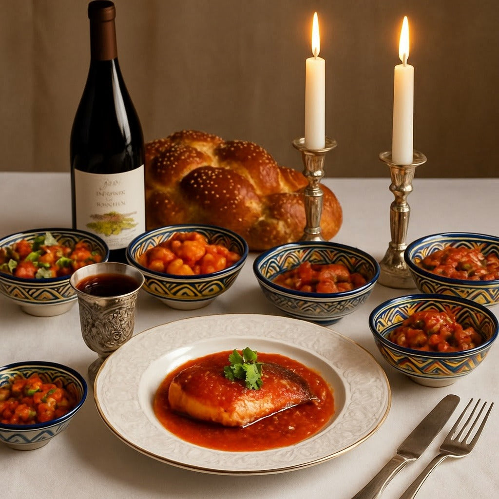 La Shabbat Box de Kosher.ma vous propose une expérience culinaire complète pour honorer le Shabbat sans contraintes. Conçue pour les familles et les particuliers souhaitant profiter d'un repas casher de qualité, notre box comprend tous les éléments nécessaires pour un Shabbat mémorable.